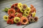 The fourth 4 week session of the 2025 CSA include large bouquets filled with premium dahlias. Other flower varieties include zinnias, ageratum, strawflower, amaranth, celosia, statice, sunflowers and more.
